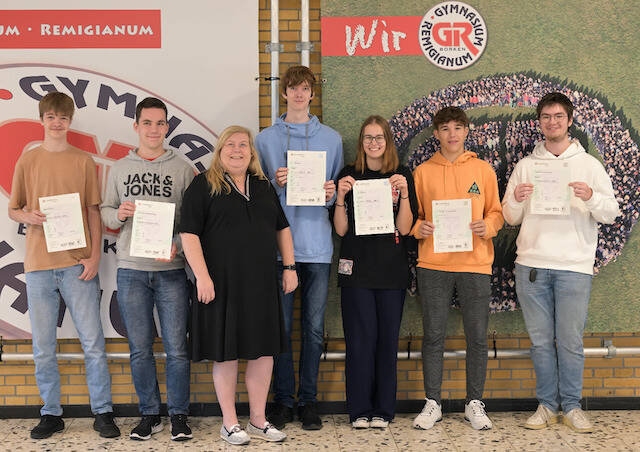 Die Mathetalente der 10. Klassen (Laurenz Bone 10a, Simon Bleker 10b, Leonie Friedrich 10c, Hilko Bäumer 10d, Oskar Stark 10e und Ben Wilting 10f) haben ihre mathematischen Fähigkeiten in der ersten Runde des Europäischen Statistikwettbewerbs unter Beweis gestellt. Sie haben diesen mit 100 von 100 Punkten bestanden und sind zur zweiten Runde zugelassen.