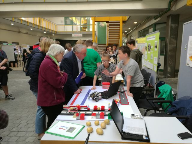 Am vergangenen Wochenende fand die diesjährige WRO statt. Die Saison 2018 stand unter dem Motto „Food Matters“. Schüler aus der Jgst. 6 beschäftigten sich in den vergangenen Wochen mit den Themen der Produktion, Verwertung und Verwendung von Lebensmitteln. Die Aufgabe des Roboterwettbewerbs in der Open Category war es, ein Robotermodell zu entwickeln, welches sich mit der Art und Weise des Anbauens, dem Teilen und dem Konsumieren von Lebensmitteln beschäftigt. Hierbei sollte sich das Projekt mit mindestens einem der folgenden Bereiche beschäftigen: Förderung einer nachhaltigen Landwirtschaft, Verbesserung der Ernährungsweise, Lebensmittelkontrolle oder Hungersnot beenden. In der Open Category arbeiteten alle Teams aller Altersklassen an der gleichen Aufgabenstellung und wurden beim Wettbewerb durch eine Jury bewertet.