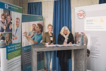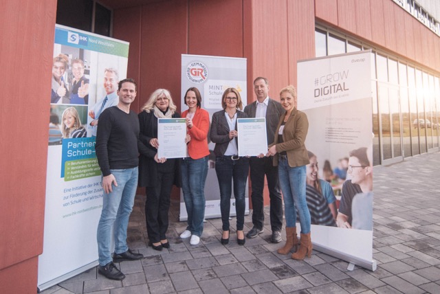 Das Gymnasium Remigianum und die d.velop AG in Gescher sind offizielle Kooperationspartner im Projekt „Partnerschaft Schule-Betrieb“ der Industrie- und Handelskammer (IHK) Nord Westfalen. Vertreter von Unternehmen und Schule unterzeichneten am 5. März eine entsprechende Vereinbarung. Damit steigt die Zahl der Kooperationen im Kreis Borken auf 94. Für unsere Schule ist es die zweite Partnerschaft mit einem Unternehmen in der IHK-Initiative.