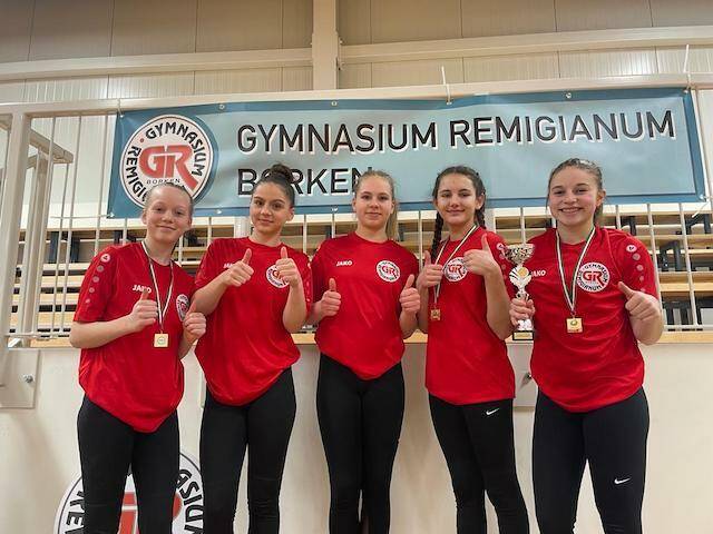 IMG 8865Nach einer unvergesslichen und erfolgreichen Woche kehrten die fünf Turnerinnen des Gymnasium Remigianum, Liv Baron, Aava Nagel, Franziska Paus, Ida Knüsting und Charlotte Höing, von Berlin nach Borken zurück. Beim Bundesfinale 2023 von „Jugend trainiert für Olympia“ erreichte die junge Mannschaft als NRW-Landessieger auf Bundesebene in der Schöneberger Turnhalle in Berlin die Bronze-Medaille und verdrängte zahlreiche Kader-Turnerinnen sowie die im Vorjahr drittplatzierte Schule aus Niedersachen vom Treppchen.