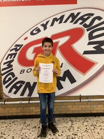 IMG 1017Elia Wilms hat mit großem Erfolg sowohl an der ersten wie auch zweiten schulinternen Runde der Mathematikolympiade teilgenommen. Deshalb durfte er mit einem weiteren Schüler den Kreis Borken bei der Landesrunde in Krefeld vertreten. Auch dort hat er viele Aufgaben richtig gelöst. Die Schulgemeinde gratuliert zu diesem großen Erfolg!