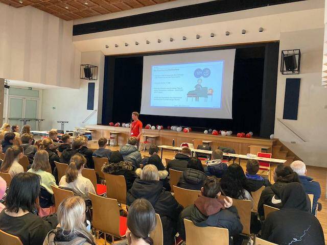 8bbfb2aa f118 423c 9407 77ec1f3bf9a5Am 7. März 2023 fand in der Aula des Gymnasium Remigianum Borken eine große Registrierungsaktion der DKMS (Deutsche Knochenmarkspenderdatei) für die Jahrgangsstufen Q1 und Q2 statt. Nach einer Begrüßung durch die Schulleiterin Frau Prangenberg informierte Lukas Lütke Wöstmann, Volunteer der DKMS, in einem 45-minütigen Vortrag über die Stammzellenspende. Im Anschluss hatten die Schüler_innen sowie Lehrer_innen die Möglichkeit, sich freiwillig bei der DKMS registrieren zu lassen und so einen Beitrag im Kampf gegen Blutkrebs zu leisten. Die Organisation der Aktion erfolgte durch die Schülervertretung des Remigianum in Zusammenarbeit mit Herrn Ombeck.