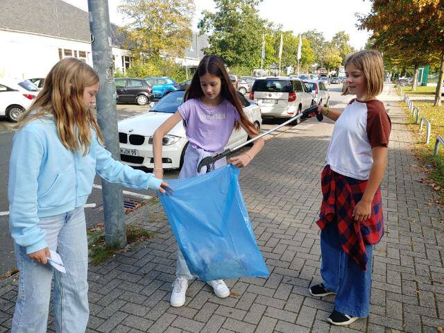 Projekt World Clean Up Day seit 2020 - Ausgerüstet mit Greifern, Handschuhen und Müllsäcken wird auf, neben dem Schulgelände und besonders im angrenzenden Stadtpark Müll gesammelt. Fokus wird in den letzten Jahren darüber hinaus auf den Verlauf des Uferbereiches von Döring- und Engelradingbach in Schulnähe gelegt.